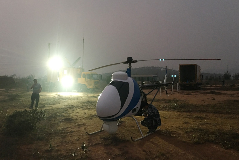 2018年1月22日晚,成功完成夜間巡檢任務的無人直升機穩穩降落在空曠的地面。