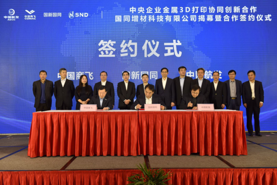 2017年12月19日,國同基金與中國航發、中國商飛簽署了三方合作框架協議并開啟了合作序幕。隨后各合作方積極推進具體合作方案及技術方案的論證和決策,于2018年9月在蘇州市高新區注冊成立國同增材科技有限公司。本次簽約,標志著中央企業對“新技術、新產業、新業態、新模式”的聯合探索正式從紙面走向實驗室和車間。