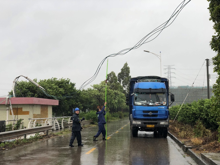 那天,超強(qiáng)臺(tái)風(fēng)“山竹”登陸廣東,佛山全市已經(jīng)啟動(dòng)了氣象災(zāi)害I級(jí)應(yīng)急響應(yīng),風(fēng)力和雨勢(shì)都越來(lái)越大。作為一個(gè)剛?cè)肼?年的新員工,我還沒有在惡劣天氣下進(jìn)行搶修的工作經(jīng)驗(yàn)。當(dāng)天我正好跟師傅顏炳全負(fù)責(zé)南海獅山官窯片區(qū)的電力搶修工作,故障接連不斷,我和顏師傅從當(dāng)天上午就奔跑各處為市民處理故障,一刻也沒有停下來(lái)過(guò)。到下午三點(diǎn)左右,我和師傅接到報(bào)障官窯南浦橋附近有導(dǎo)線垂落,存在人員觸電的風(fēng)險(xiǎn),于是我們立即開車趕過(guò)去。