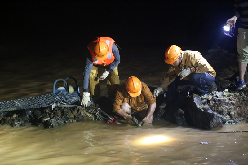 海底電纜在海南澄邁登陸,電力施工人員通宵作業。