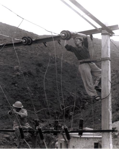上世紀70年代,橫琴島電力工人在維修供電線路