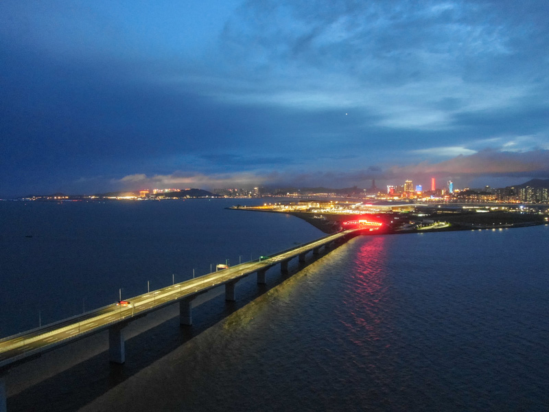 2018年9月16日,強臺風“山竹”來勢洶洶,在其過境珠海期間,港珠澳大橋供電穩定正常,大橋當晚照常亮燈。