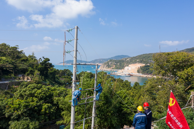 南方電網(wǎng)廣東珠海供電局運(yùn)維人員對(duì)大萬(wàn)山島上的供電線路進(jìn)行升級(jí)改造。