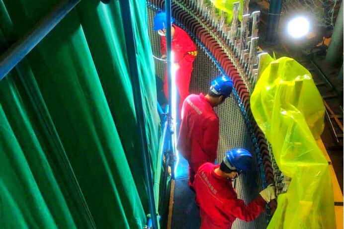鐘祥水泥公司設備維修人員檢修大窯窯頭護壁