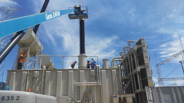 2018年,中國西電集團為中國第一個海外特高壓直流項目——巴西美麗山特(二期)高壓輸電項目研制的±800千伏換流變壓器。圖為產品安裝現場。