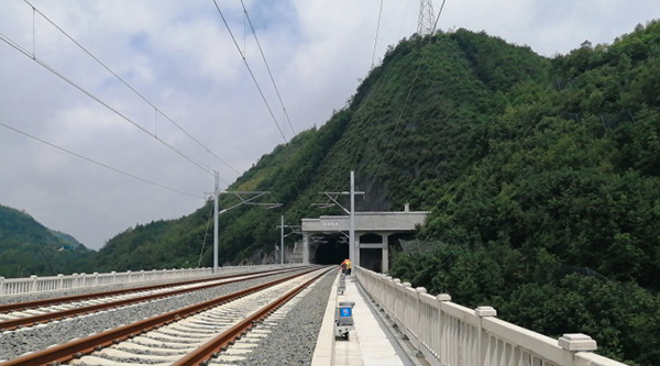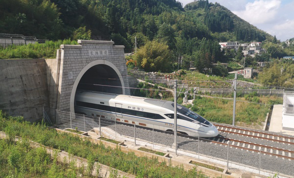 試運(yùn)行列車從長(zhǎng)地隧道駛出
