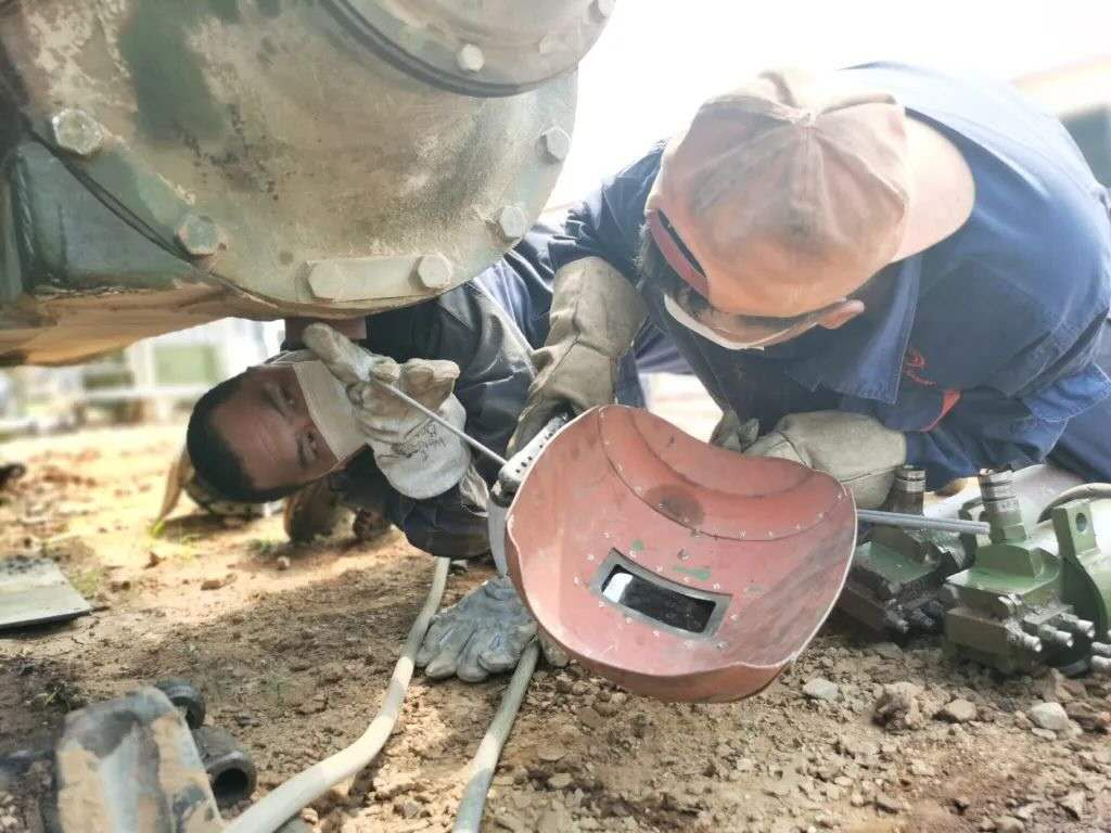 環(huán)境溫度、罐體內(nèi)溫度、焊服內(nèi)溫度,層層升溫,北重集團(tuán)專汽公司職工在攪拌車罐體內(nèi)承受著“桑拿”的熱度。溫度高,他們的干勁熱情更高,汗水在焊服內(nèi)流淌,換來的是生產(chǎn)安全的保障。