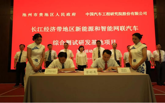 通用技術集團所屬中國汽車工程研究院股份有限公司(以下簡稱“中國汽研”)致力于打造國家新能源和智能網聯汽車高質量發展戰略支撐平臺,強勁助力長三角一體化發展。2019年8月21日,中國汽研與安徽省池州市貴池區人民政府簽署了投資合作協議,規劃投資約38億元建設長江經濟帶新能源與智能網聯汽車綜合測試研發基地。該項目建成后,將滿足55噸及以下汽車的各類法規試驗、綜合研發、測試評價以及部分關聯的汽車駕乘體驗,為汽車研發制造、試驗檢測、智能網聯等提供解決關鍵技術問題的服務平臺,并通過產品結構優化升級,推動汽車技術的電動化、網聯化、智能化和共享化可持續發展,為實現汽車產業綠色發展和高質量發展發揮重要的支撐和引領作用;同時,以綜合測試研發基地為依托,加速融入長三角產業協同分工體系,合力助推形成優勢互補、高質量發展區域經濟的布局,為構建長三角汽車產業生態圈、促進安徽省汽車產業轉型升級、促進汽車先進制造業和現代服務業融合發展提供巨大的推動作用。