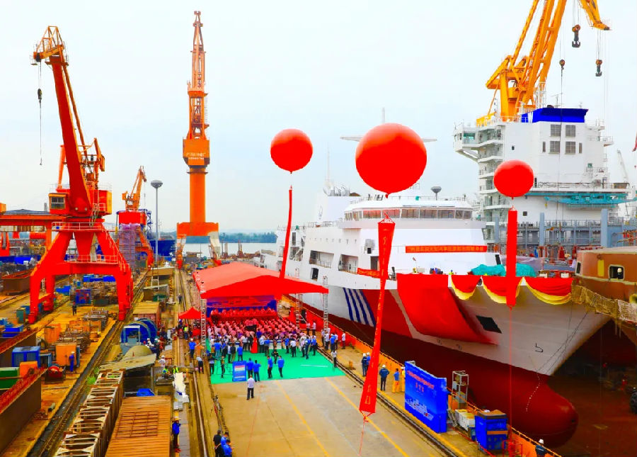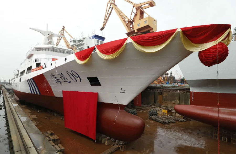 9月29日,我國規模最大、裝備先進、綜合能力強,具有世界領先水平的萬噸級海事巡邏船“海巡09”號,在中國船舶集團有限公司旗下中船黃埔文沖船舶有限公司文沖廠區成功下水。