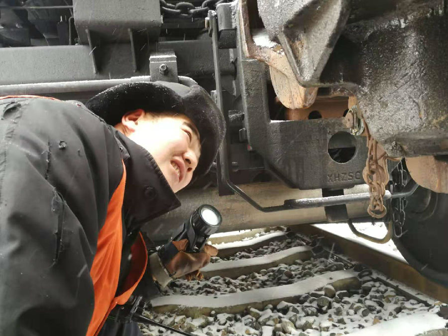 “忽如一夜春風(fēng)來”,積雪略消融的檢修作業(yè)場上,一夜之間,各種鋼管、管線表面早已結(jié)了厚厚的一層霜花。作為戰(zhàn)斗在鐵路運(yùn)輸?shù)谝痪€的檢車員們,正戰(zhàn)天地、斗風(fēng)雪,在兩行鋼軌外的狹長戰(zhàn)線上,揮動“金戈”,實(shí)踐著“不到最后一刻,絕不收兵”的誓言。