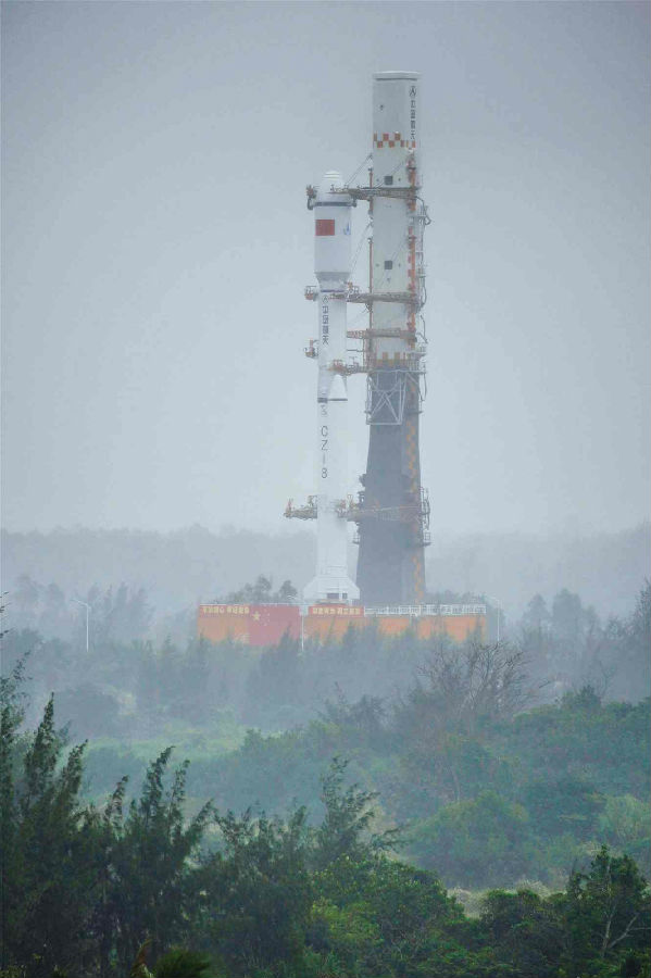 雨霧蒙蒙中,火箭向發(fā)射區(qū)前進(jìn)