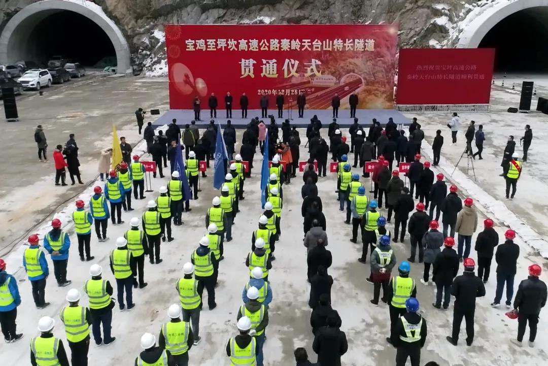 2020年12月28日,由中交集團所屬中交一公院設計、中交二公局參建的陜西寶雞至坪坎高速公路秦嶺天臺山特長隧道實現貫通,為寶坪高速2021年建成通車奠定堅實基礎。