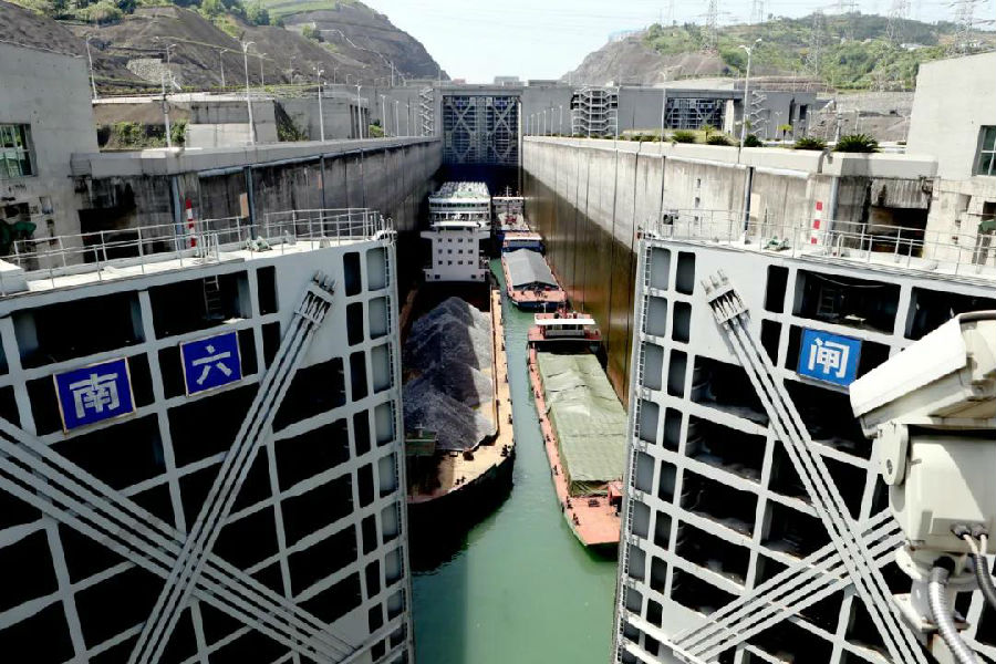 截至2020年12月31日,三峽樞紐過壩貨運量達1.38億噸,通航效益顯著。其中,三峽船閘過壩貨運量達1.37億噸,主要運行設備完好率達100%,兩線船閘平均通航率為94.62%;三峽升船機按時恢復通航,充分發揮了快速過壩通道的作用。