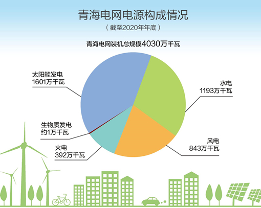 據(jù)最新統(tǒng)計,截至2020年底,青海電網(wǎng)裝機總規(guī)模達(dá)到4030萬千瓦,其中清潔能源裝機達(dá)3638萬千瓦,占比超全網(wǎng)裝機總規(guī)模的九成。清潔能源裝機中,太陽能發(fā)電、風(fēng)電、生物質(zhì)發(fā)電等新能源裝機共2445萬千瓦,占比60.7%;水電裝機1193萬千瓦。太陽能發(fā)電中,光伏裝機1580萬千瓦,超過水電,成為青海省第一大電源。