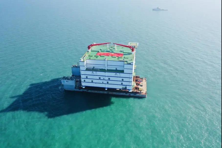 該換流站由三峽集團聯合產業鏈相關單位組織科研攻關,完成首臺套建設任務。該換流站負責匯集輸出三峽如東H6、H10項目(共80萬千瓦)以及中廣核如東H8項目(30萬千瓦)總計110萬千瓦容量生產的電能,可有效解決海上風電場大容量、遠距離輸電問題。其平面面積近乎一個標準足球場,高度約等于15層居民樓,是名副其實的“大塊頭”,是目前世界容量最大、電壓等級最高、體積最大的海上換流站。