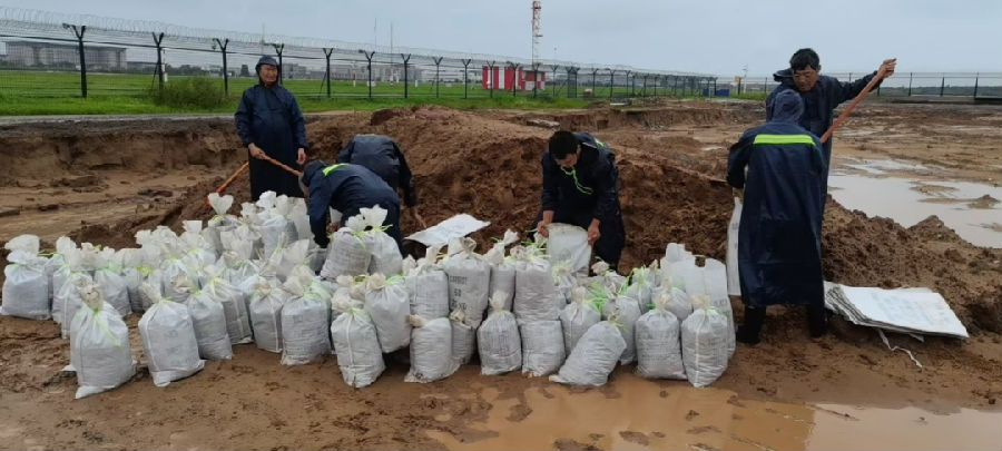 民航機場建設集團所屬民航建工參建的鄭州新鄭國際機場三期擴建工程項目和鄭州湖畔云廬項目第一時間成立防汛應急工作小組,召開會議進行防汛部署。在機場三期擴建工程飛行區(qū),組織現(xiàn)場人員冒雨在飛行區(qū)圍界附近進行防汛搶險,灌裝防汛沙袋,修復飛行區(qū)附近破損道面和坍塌溝槽。在湖畔云廬項目部,組織工作人員架設水泵、鋪設水管、裝填防汛沙袋,對存在隱患的部位進行緊急處理。