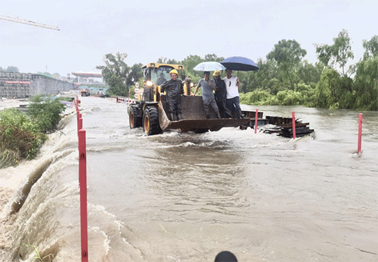 7月21日,連續強降雨使得中鐵十五局集團四公司新鄭西關橋項目施工便道泄洪迫在眉睫,項目部組織人員緊急拆除障礙物。隨著水流越積越多,西關橋項目施工現場道路已完全被切斷,緊急情況下,項目部組織機械設備轉移抗險救災人員,這些人員中包括項目員工及社區工作人員。經過近半個小時的緊急轉移,21名受困人員全部轉移至安全地域。