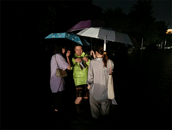 7月20日晚,中鐵十六局集團鄭州地鐵12號線05工區員工邵孟來加入鄭州志愿救援隊微信群,按照群里指揮,就近救援被困群眾。當晚,邵孟來根據微信群內信息,摸黑淌水走過數個街道,找到三個被困女孩,一直護送她們到安全地點與家人匯合,并將隨身攜帶的手電筒、食品等應急物資也一并送給了她們。