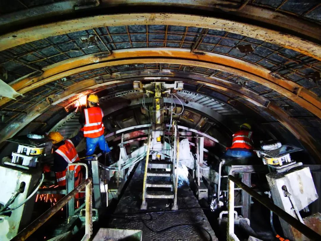 隧道掘進(jìn)期間,中交集團(tuán)首次在國(guó)內(nèi)高速公路勘察設(shè)計(jì)中采用水平定向鉆長(zhǎng)距離鉆進(jìn)2271米,進(jìn)行孔內(nèi)電視和取芯,精準(zhǔn)查明進(jìn)口至F6區(qū)域工程地質(zhì)及水文地質(zhì)條件,充分利用 “5G+智能化+信息化”的融合技術(shù),實(shí)現(xiàn)對(duì)中交天和建造的TBM掘進(jìn)參數(shù)的監(jiān)控、隧道有毒有害氣體監(jiān)測(cè)、災(zāi)害預(yù)警等。其首次在公路隧道領(lǐng)域使用的“TBM中導(dǎo)洞+主洞鉆爆法”組合工藝,采用多種方式加強(qiáng)初期支護(hù),歷經(jīng)80天艱辛奮戰(zhàn),最終實(shí)現(xiàn)TBM安全快速通過(guò)斷層地帶,繼續(xù)向天山深處挺進(jìn)。