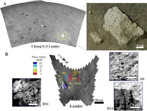 1月8日,一項基于嫦娥五號探測數據的最新研究成果在《科學-進展》上發表:嫦娥五號采樣區的水含量在120ppm(百萬分之120,相當于1噸月壤中約有120克“水”)以下;采樣區的一塊巖石中的水含量約為180ppm(相當于1噸巖石中約有180克“水”)。