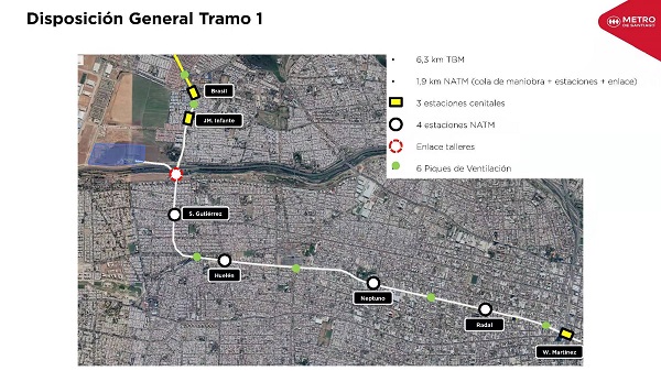智利圣地亞哥地鐵7號線1標(biāo)段線路圖