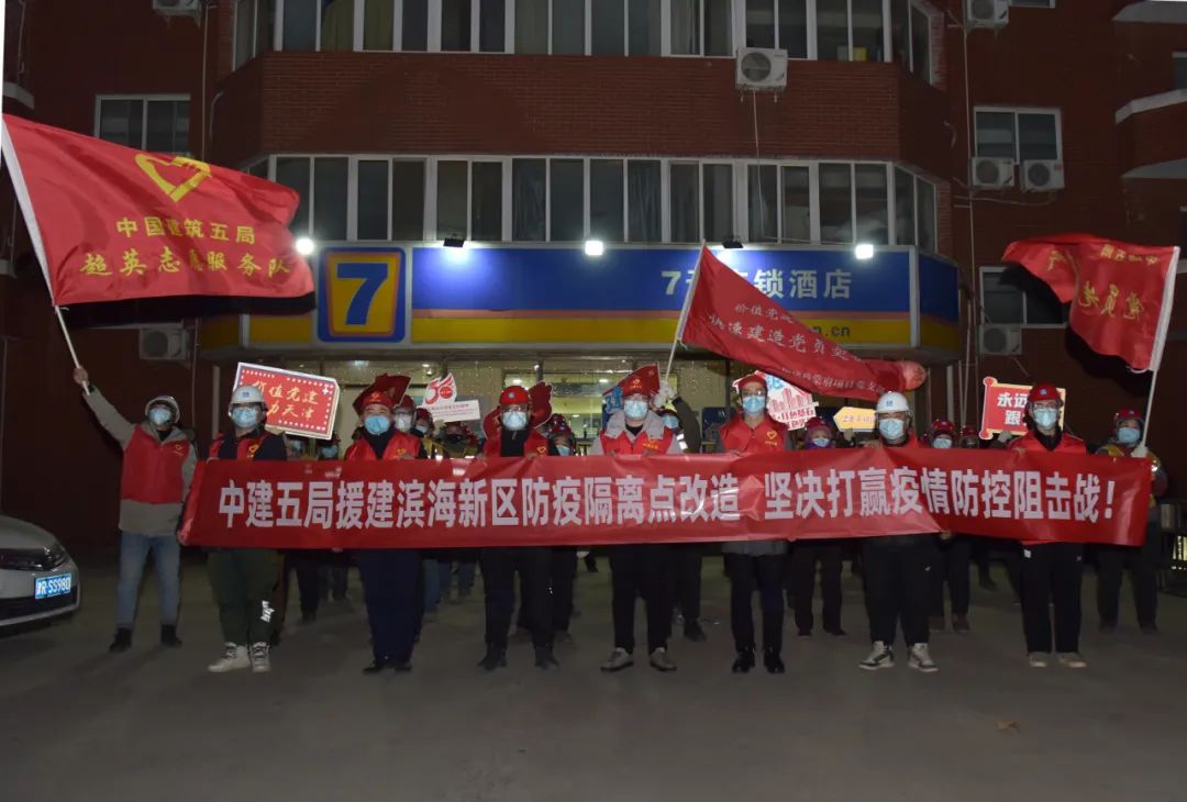 1月14日,中建五局積極響應濱海新區政府號召,第一時間啟動濱海新區疫情隔離點改造援建工作,成立濱海新區隔離點應急指揮部,部署人員調配、物資儲備、安全管理等方面工作并部署成立六個黨員突擊隊,共計200余人的隊伍赴濱海新區支援。零點開始進場施工,黨員干部奮戰在隔離改造第一線,進場16小時之內密集完成了千余平方米醫用地膠鋪設、完成110處窗戶限位和排風口密封改造等任務,并達到驗收標準。