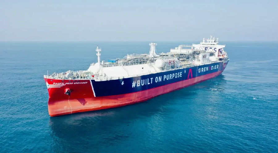 5月16日,中國船舶集團旗下江南造船為浦銀租賃和山東海洋集團下屬太平洋氣體船(香港)控股有限公司(PACIFIC GAS)建造的99000立方米B型艙超大型乙烷運輸船(VLEC)“PACIFIC INEOSGRENADIER”號交付。該船是江南造船4月23日開始逐步復工復產以來交付的第一艘船,也是今年3月上海疫情以來長興鎮交付的第一艘船。