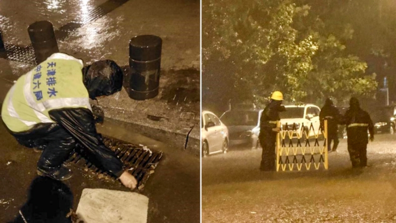 7月29日晚,中建六局水利水電公司在接到指令后,立即組織200余人的防汛作業人員隊伍,整編成五個防汛小組,分別對接天津市排水單位。各防汛小組攜帶警示燈、雨衣雨鞋、反光背心、安全繩、編織袋等各類應急物資設備,前往指定防汛點位。7月30日凌晨,局部地區降水量開始加大,所有防汛人員進入備戰狀態,打開積水點位井蓋、安裝護欄、布置警示燈,并派專人看護,協助架設臨時抽水設備、清撈收水井篦等。此外,中建六局各防汛小組還分別前往天津市永定河泛區、北辰區雙新大道、靜海區臺頭鎮大清河右岸防汛點位,竭力保障人民群眾生命財產安全。