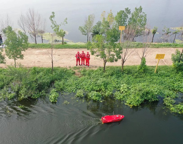 8月5日,天津靜海大清河,技術(shù)人員利用無人偵測船不間斷監(jiān)測水情,探測水下地形地物,快速準確獲取水下堆體數(shù)據(jù)及模型……