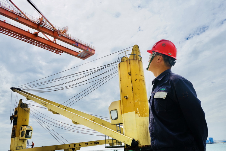 記者在現場看到,永新一期電廠專用煤碼頭為高樁梁板型式,平臺長230米、寬25米,安裝有兩臺卸料能力為1250噸/小時的橋式抓斗卸船機。據介紹,該碼頭最大可滿足5萬噸級散貨船裝卸作業要求。