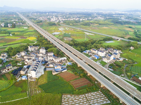 杭黃高鐵東起浙江省杭州市,止于安徽省黃山市,線路全長265公里,共設(shè)10個車站,設(shè)計時速250公里。通車之后,杭州到黃山將由目前的3個多小時縮短至1.5小時。