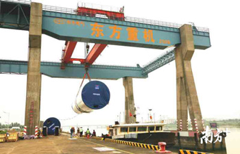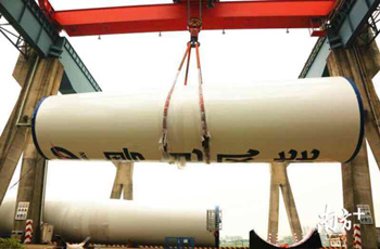 11月21日,廣東省首個開工建設的大功率海上風電項目——粵電湛江外羅海上風電項目首套5.5MW塔筒在東方電氣集團東方重機專用碼頭順利發貨。該項目是今年8月18日東方重機與中國水電四局(蘭州)機械裝備有限公司合作成立廣州新能源裝備制造基地后的首個履約項目,其首套塔筒的發運標志著東方重機已具備海上風電塔筒生產能力。