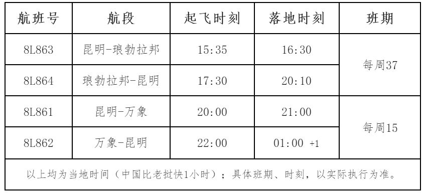 祥鵬航空計劃于2019年12月22日起開通昆明=瑯勃拉邦、12月23日起開通昆明=萬象航線。