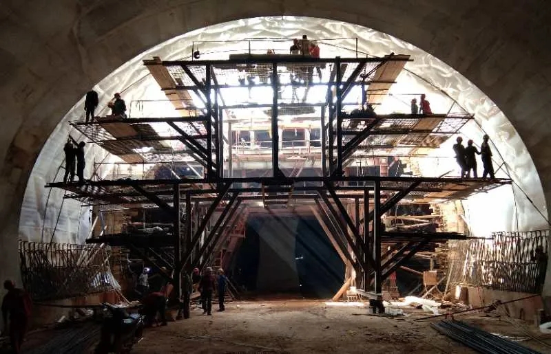 和樂隧道位于云南省玉溪市境內,全長7.9公里,是中老鐵路玉溪至磨憨段最北端的第一個長大隧道,被建設者稱為玉磨鐵路“咽口”隧道。隧道穿越兩條斷層破碎帶,應力轉換復雜,圍巖極不穩定且富水,溜坍、軟巖大變形和突泥、涌水頻發,安全風險極高、施工難度極大,是全線重點控制性工程之一。在與復雜地質的博弈中,建設單位和施工單位組織專家組現場會診,根據圍巖變化情況,合理選擇開挖工法,優化支護參數,加強工序寫實分析,在確保安全質量的同時,提高了工效。