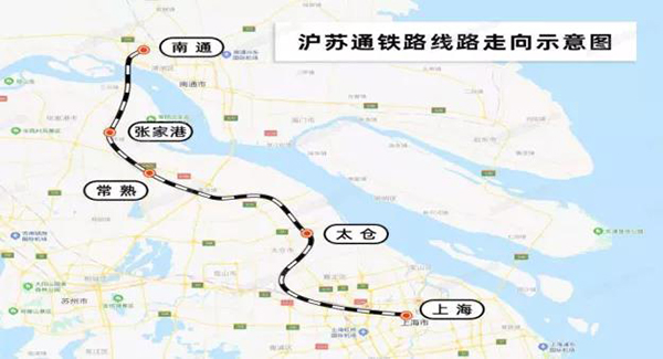 據(jù)悉,滬蘇通鐵路開通運營后,向北與在建的鹽城至南通鐵路和已建成運營的連云港至鹽城鐵路、南京至啟東鐵路、新沂至長興鐵路連接,向南與上海至昆明高鐵等連接,在魯東、蘇北與上海、蘇南、浙東地區(qū)之間形成了一條便捷的鐵路運輸大通道,大大縮短了上海與南通及蘇北地區(qū)的時空距離,極大便利了沿線群眾出行,對發(fā)揮上海中心城市輻射帶動作用,推動長江三角洲區(qū)域一體化發(fā)展具有重要意義。