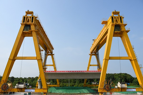 近日,南沿江城際鐵路金壇西制梁場首榀箱梁架設順利完成,進入橋梁上部結構施工階段。