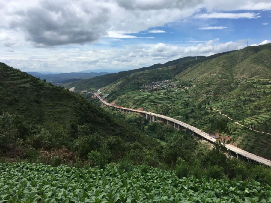曹家山特大橋橋梁總長2.08公里,是楚姚項目長度最長的橋梁,橋梁起止樁號為K69+173~K71+258,位于姚安縣前場鎮莊科村。橋區內最高海拔與最低海拔高差達241.5米。曹家山右幅共計46跨,左幅共計69跨,總共115跨,575片30米T梁。