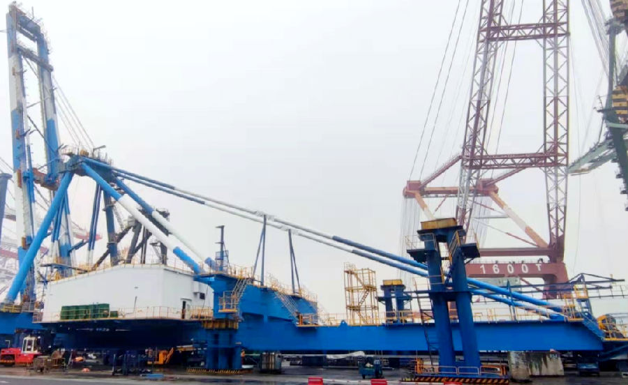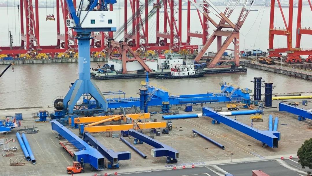 近日,上海振華重工公司長興島基地,北部灣港欽州大欖坪南作業(yè)區(qū)7-8號(hào)泊位集裝箱改造項(xiàng)目第一臺(tái)自動(dòng)化雙小車岸橋完成門框吊裝,標(biāo)志著項(xiàng)目岸橋由結(jié)構(gòu)制造開始進(jìn)入核心的總裝階段。