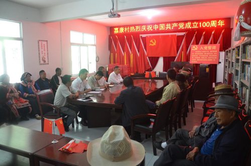 結(jié)合“七一”黨建活動(dòng),開(kāi)展鄉(xiāng)村振興討論。在建黨百年之際,駐村干部與嘉康村黨員干部一同開(kāi)展主題黨日活動(dòng),重溫入黨誓詞,述說(shuō)對(duì)黨的深情,慶祝黨的百歲生日。黨員干部結(jié)合實(shí)際進(jìn)行了一場(chǎng)“鄉(xiāng)村振興,如何起好步、開(kāi)好局”的討論,大家表示,要積極聽(tīng)黨話、感黨恩、跟黨走,黨員干部要帶好頭、做表率,持續(xù)推動(dòng)黨史學(xué)習(xí)教育深入開(kāi)展,推進(jìn)鞏固脫貧攻堅(jiān)與鄉(xiāng)村振興有效銜接,加快嘉康村特色產(chǎn)業(yè)發(fā)展,推動(dòng)美麗鄉(xiāng)村建設(shè)。