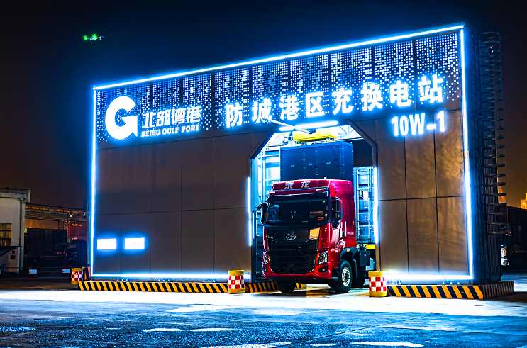 全國港口首座自主設計電動機械智能充換電站在防城港港區成功試運行