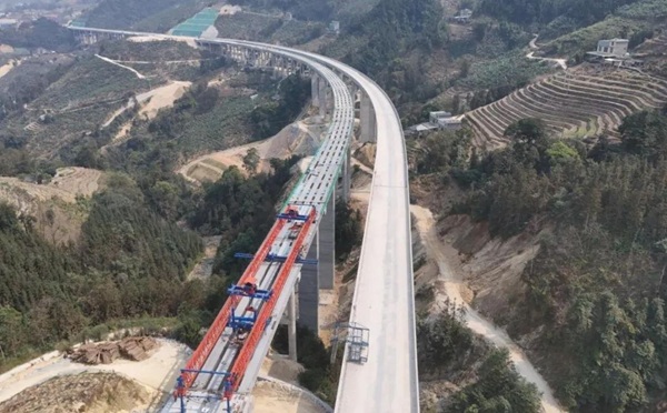 目前,渝昆高鐵全線路基土石方已完成95%,橋隧施工完成超80%。