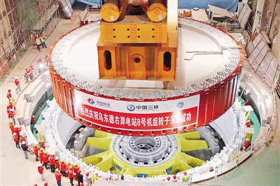 二月十六日,三峽集團烏東德水電站八號機組轉子順利吊入機坑,成為烏東德水電站發電工期中的里程碑節點。中國三峽傳媒公司供圖