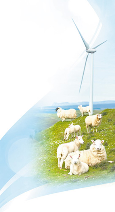 羊群在中廣核歐洲能源公司運營的愛爾蘭風電場中休息。