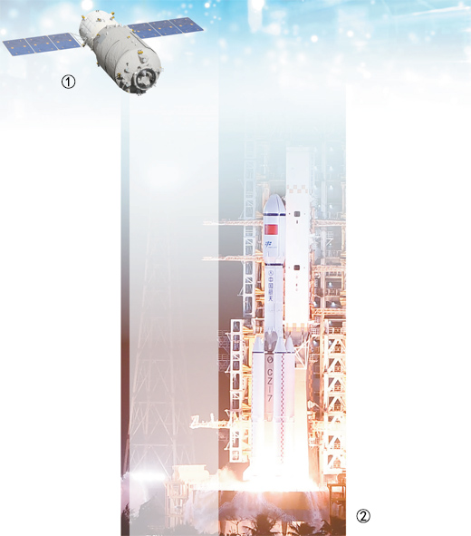 圖①:天舟七號(hào)模擬圖。中國(guó)航天科技集團(tuán)五院供圖