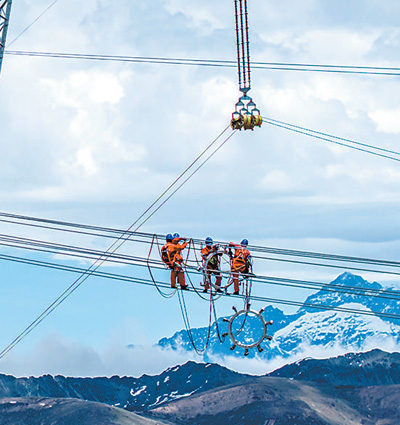施工人員在國家電網(wǎng)川渝特高壓輸電工程川1標段作業(yè)。