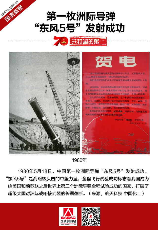 【國資畫報·共和國的第一】第一枚洲際導彈“東風5號”發射成功
