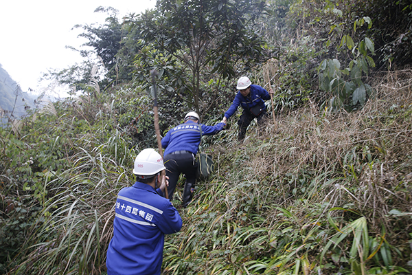 沿著電力線路,他們從一個山頭到另一個山頭,或是砍掉長得已“夠”到電線的竹子,或用望遠鏡檢查線路上的設備,有時還要爬上電線桿進行查看。中間,渴了就摘幾個冰糖橙,餓了就到山腳下的飯館湊合著吃一點。