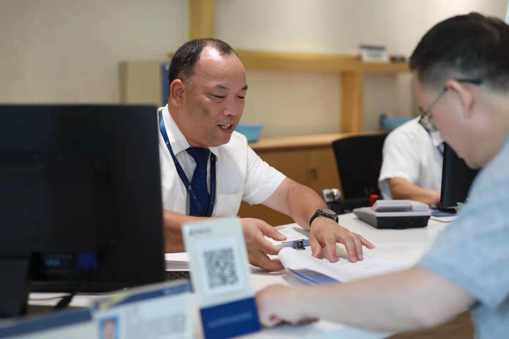 陳梓棠在營業廳年齡最大,十多年客服經驗的他面對客戶時耐心十足,有條不紊,但有時他會沖著客戶“大聲喊”,“其實不是吵架,有些客戶年紀大了,聽力不太好,必須要提高音量才能讓對方聽清楚。”