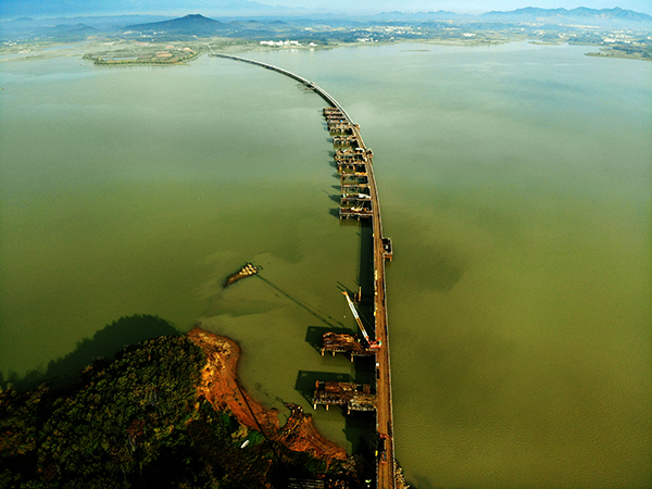 為了讓水生生物和鳥類的生存環(huán)境不受打擾,中國鐵建所屬中鐵十九局對施工工藝、施工進度等多方面都進行了綜合考量,落實環(huán)保措施10多項。他們貫徹“預防為主、保護優(yōu)先,開發(fā)與保護并重”的原則,無條件接受環(huán)保、水保等部門的監(jiān)督、檢查和指導,兩年多時間,實現(xiàn)外界向業(yè)主的零投訴。該項目負責人稱,新妙湖大橋建設中的一系列環(huán)保措施,不僅有效保護了鄱陽湖水生生物資源和生態(tài)環(huán)境,還為橋梁建設環(huán)保施工探索總結(jié)出一套可借鑒經(jīng)驗。