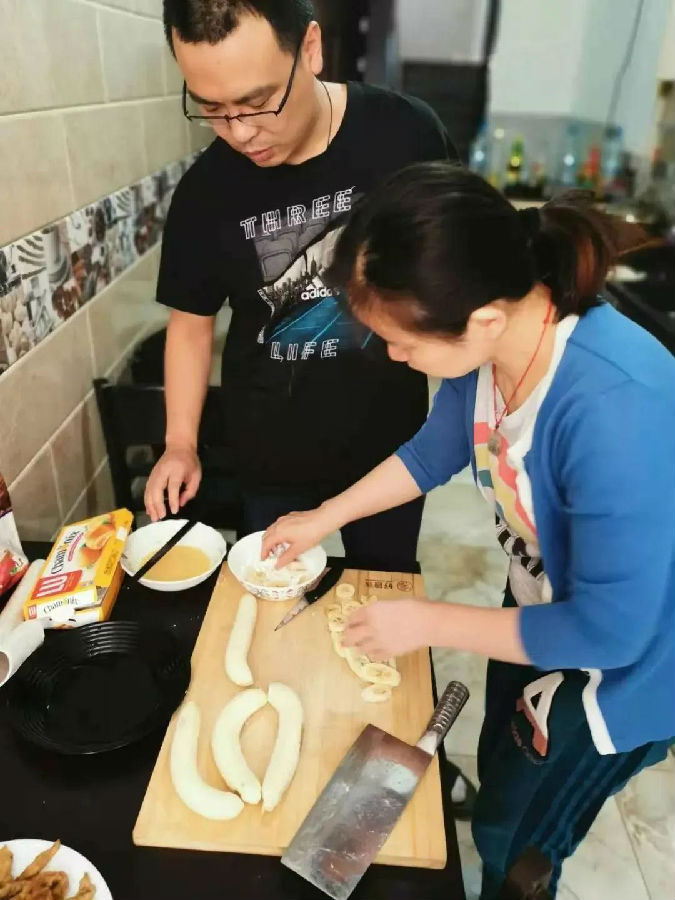 為了豐富隔離生活,大家組織了外語興趣班和專業交流班,每天學習一點外語,并交流專業知識。在隔離的日子里,緊鎖的公寓大門外是看不到、摸不到卻真實存在的新冠病毒,而門內是流動著的守望相助的同胞情誼。在這里,過硬的廚藝才是硬通貨,親手做上一盤美味的大盤雞、一碗熱騰騰的面條足以慰藉思鄉的心。